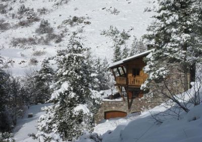 Grand chalet en pierre de 195 m² au milieu d'un terrain de 8000 m². Exposition plein sud, avec une vue magnifique sur la vallée, le village de St Dalmas et les pistes de ski de La Colmiane.